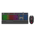 Hone your skills and dominate the battlefield with the Ant Esports KM500 Keyboard-Mouse Gaming Combo. The plug-and-play keyboard is universally compatible with Windows and Mac and is built out of premium-grade plastic with a brushed aluminum finish on top.