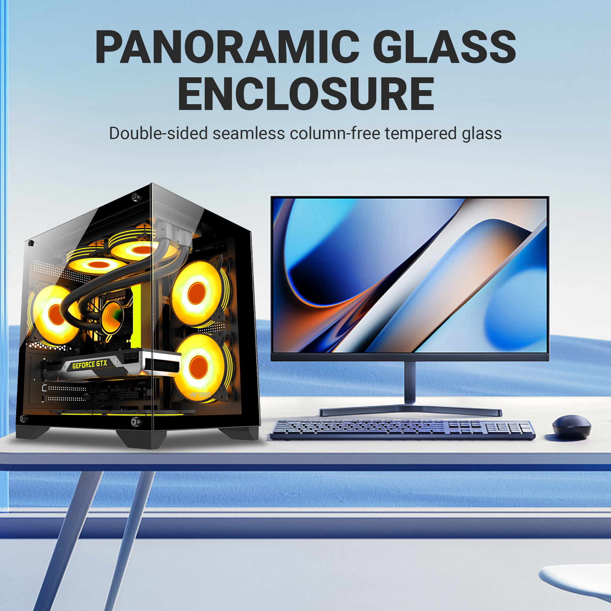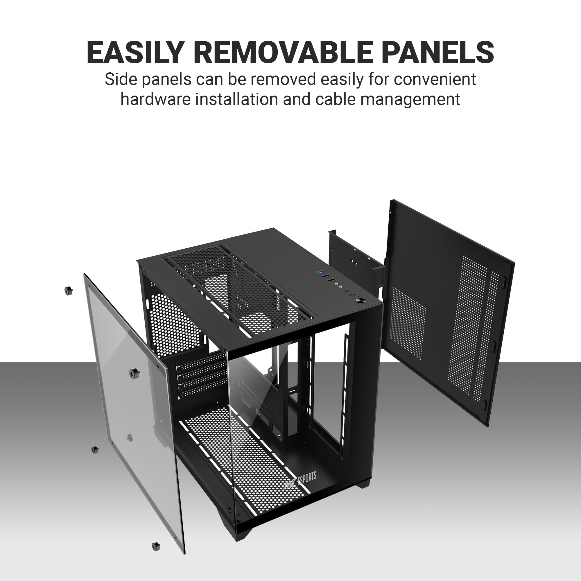 • Black, Mid-Tower, 340 x 270 x 350 mm, Stylish Front & Side Tempered Glass Panel