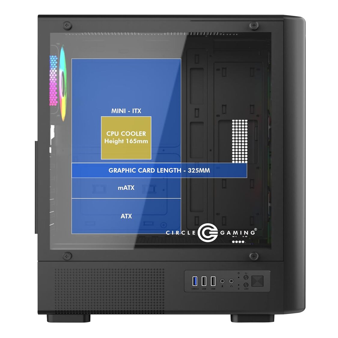 - High-End Component Support: Fits graphics cards up to 325mm and CPU coolers up to 165mm.