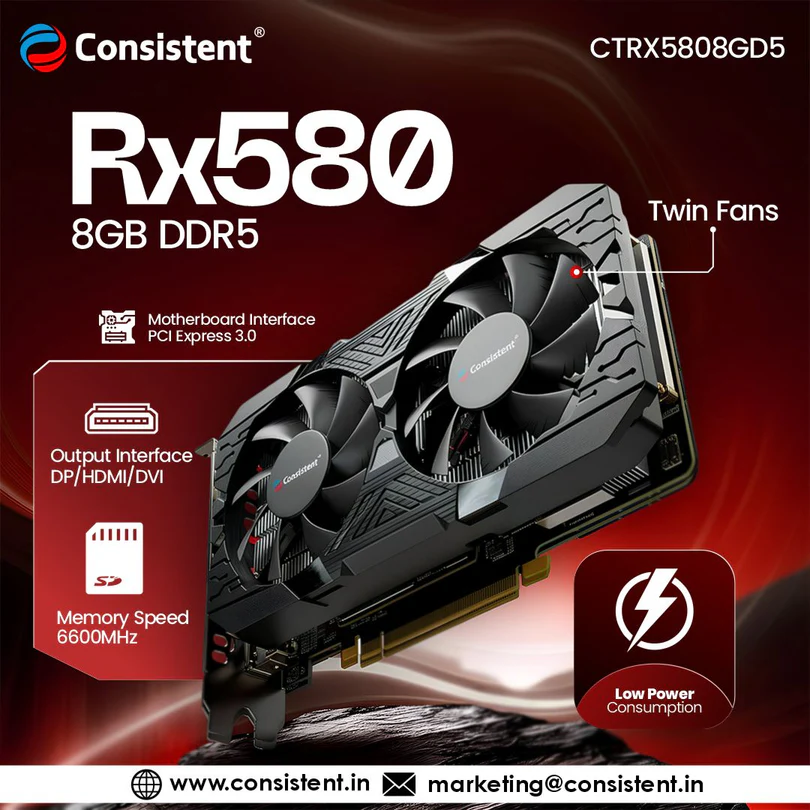 Consistent AMD RX580 8GB DDR5 256Bit Graphics Card (CTRX5808GD5)