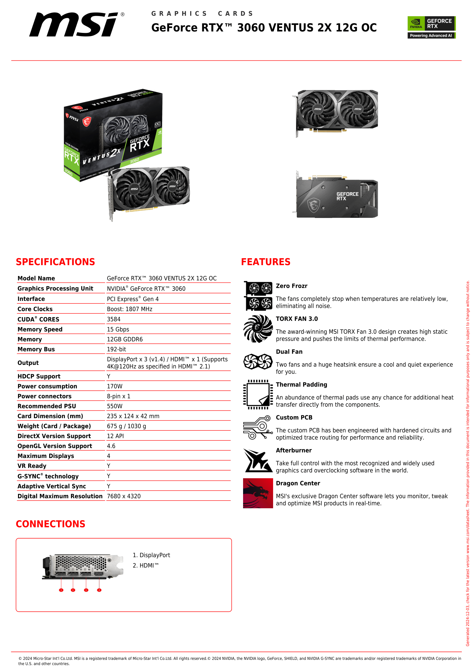 MSI RTX 3060 Ventus X2 12GB OC Graphics Card