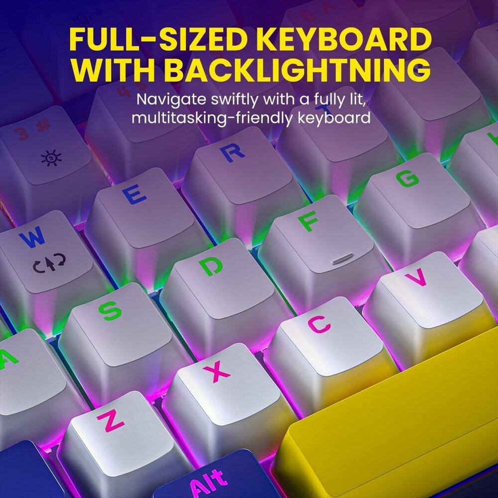 • Full-Sized Backlit Keyboard: With a 104-key layout, our keyboard ensures efficient multitasking & quick access to complex key combinations. The backlights add a cool aesthetic and also help during low-light environments.