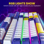 • Multiple Lighting Modes: Equipped with vibrant RGB lighting effects, the keyboard is perfect for both work and gaming, day or night. Enjoy 20+ dynamic modes, adjustable brightness, and flowing speed for a personalized touch.
