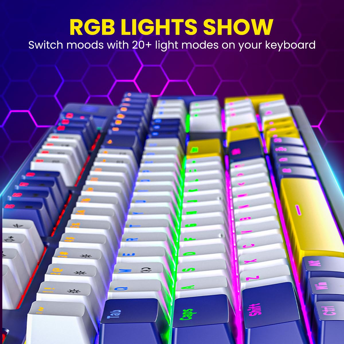 • Blue Tactile Switches: The distinct bump of the blue tactile keys ensures accurate keypresses, reducing errors for improved typing and gaming. Enjoy a satisfying feel and heightened performance in fast-paced gaming scenarios.