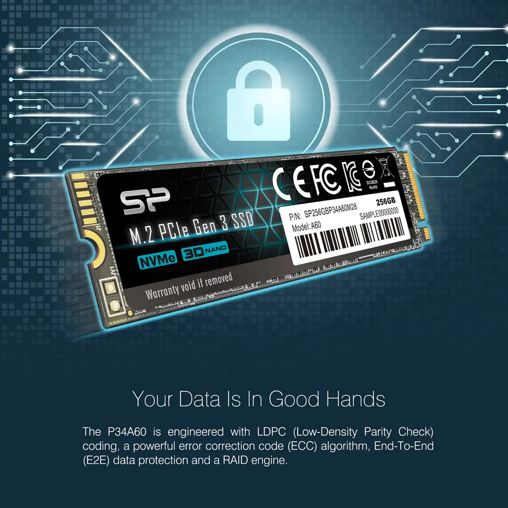 The P34A60 is engineered with LDPC (Low-Density Parity Check) coding, a powerful error correction code (ECC) algorithm, to keep data secure. Furthermore, End-To-End (E2E) data protection, to ensure that accessed and retrieved data are correct from start to finish, and a RAID engine, which provides an acceptable level of fault tolerance, work to enhance data integrity for greater reliability and stability.