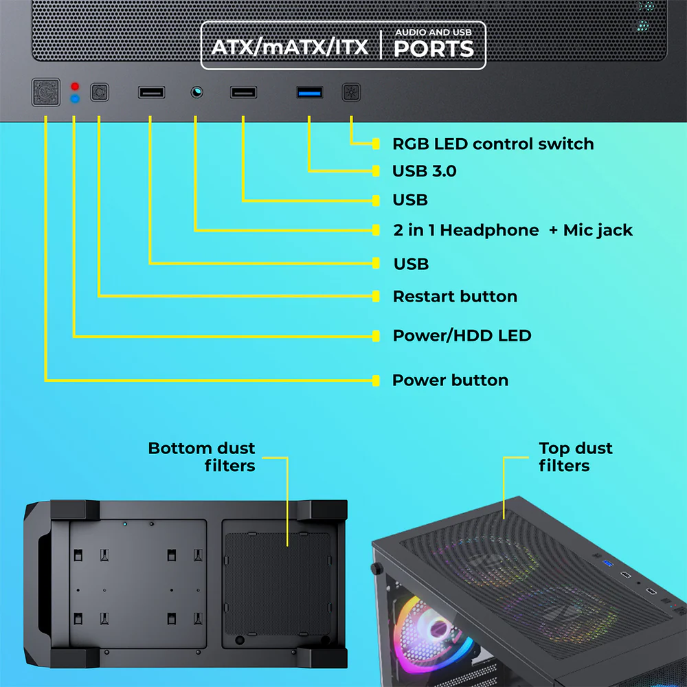 | Side panels | Tempered glass | |
